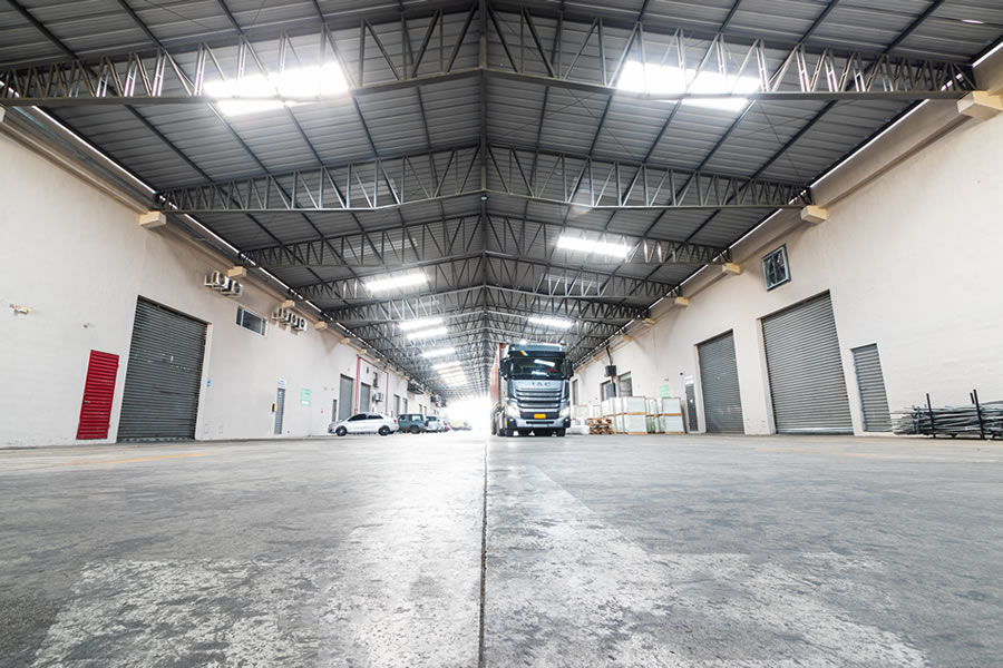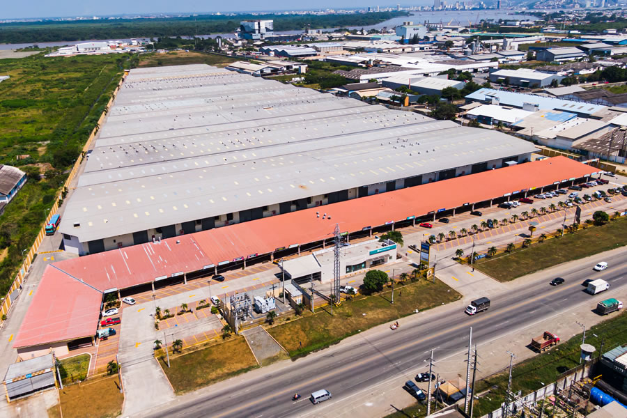 Via de circulación y descarga entre bodegas son de 22 metros (doble vía) totalmente cubiertas con Steel Panel.